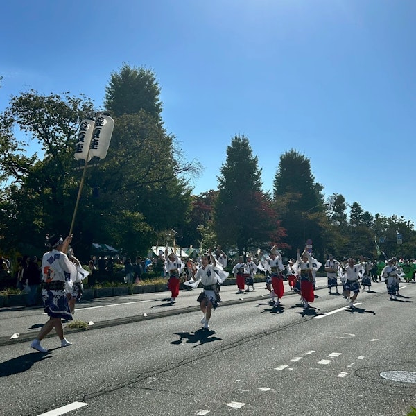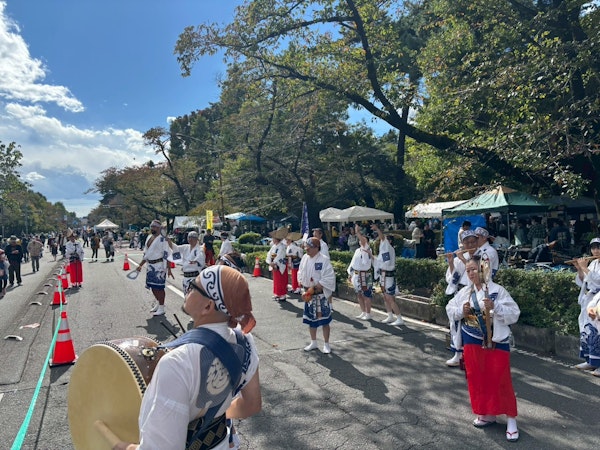 パレード終了後は、歩行者天国の一画をお借りして、阿波踊り体験会を開催!参加された皆さまに踊り方をレクチャーさせて頂き、その後皆さまと一緒に阿波踊りを多いに楽しみました。