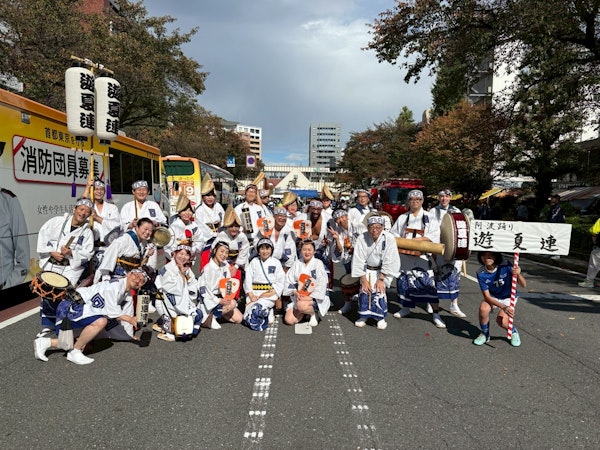 今年も我々遊夏連は、国立駅から真っ直ぐ南に伸びる大きな大学通りを練り歩くパレードに参加させていただき、阿波踊りを披露させて頂きました。